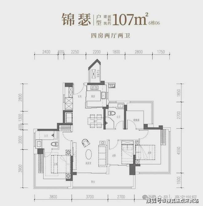 建面约106㎡宽幕人生,以IMAX光幕揽景,以LDKB方厅聚情,更以转角视野与匠心细节,奢享从容生活。• 锦瑟·建面约107㎡4房2厅2卫:双龙抱珠,一线园景,奢阔雅居