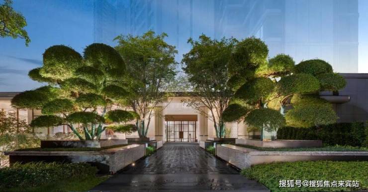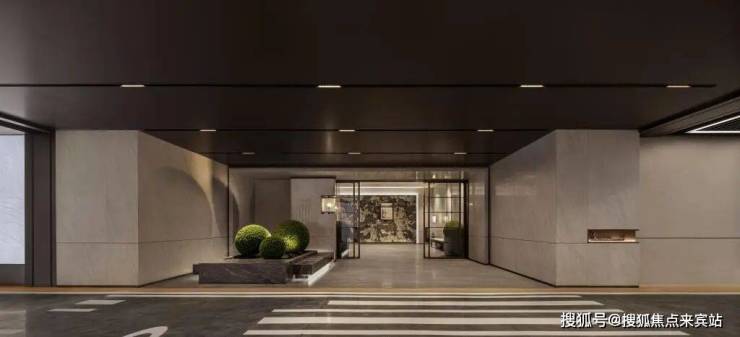 大境从设计源头就把景观、大堂、建筑立面拉通,铺装缝隙精准对齐,台阶全部抹平。