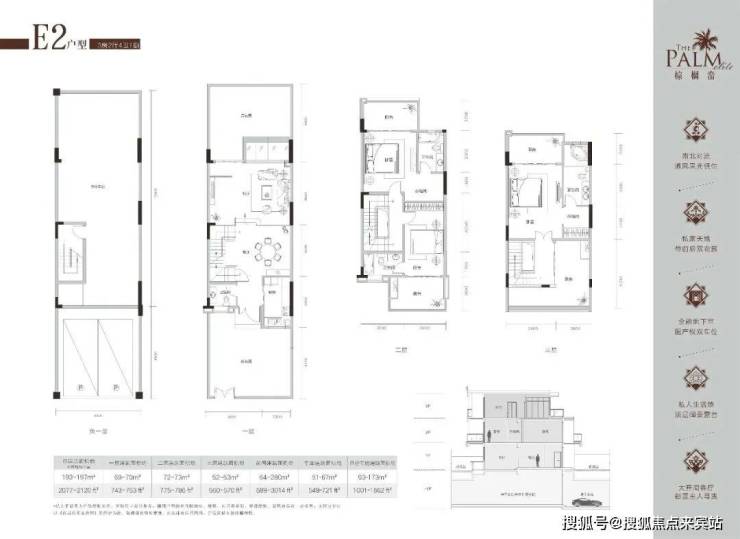 有建筑面积约230-460㎡的联排及双拼,部分产品拥有私家电梯,产品设计有前后花园、露台及带双车库产权地下室,舒适惬意的墅区生活。