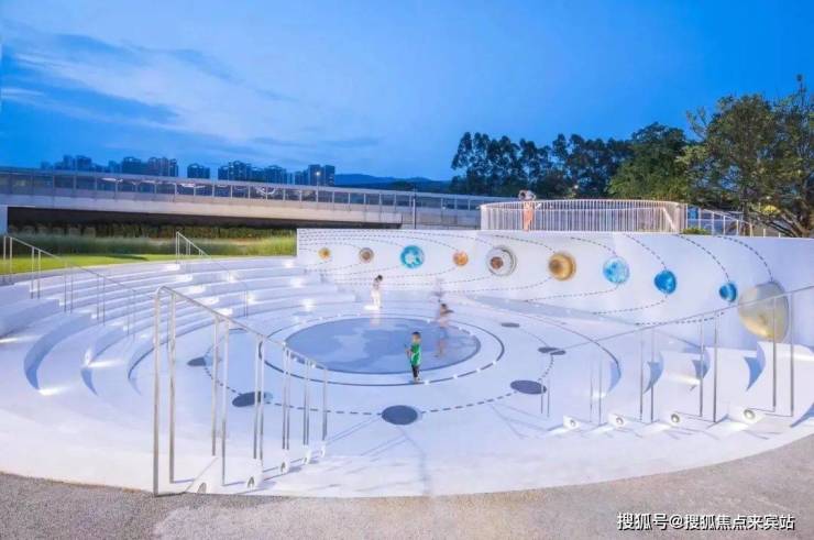 整个园林由环形跑道围绕,大门处设有约265米景观中轴,沿景观中轴直达成人泳池、儿童泳池,更设有儿童乐园、长者健身区等