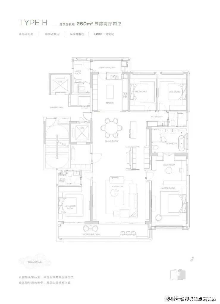 【260㎡户型】南北双阳台-南向双套间-私家电梯厅-LDKB一体化