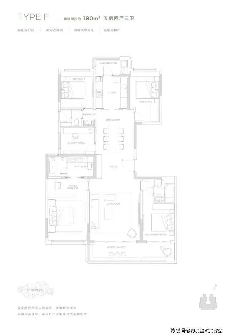 【190㎡双阳台户型】观景双阳台-高定双套间-私家电梯厅-双洄游动线