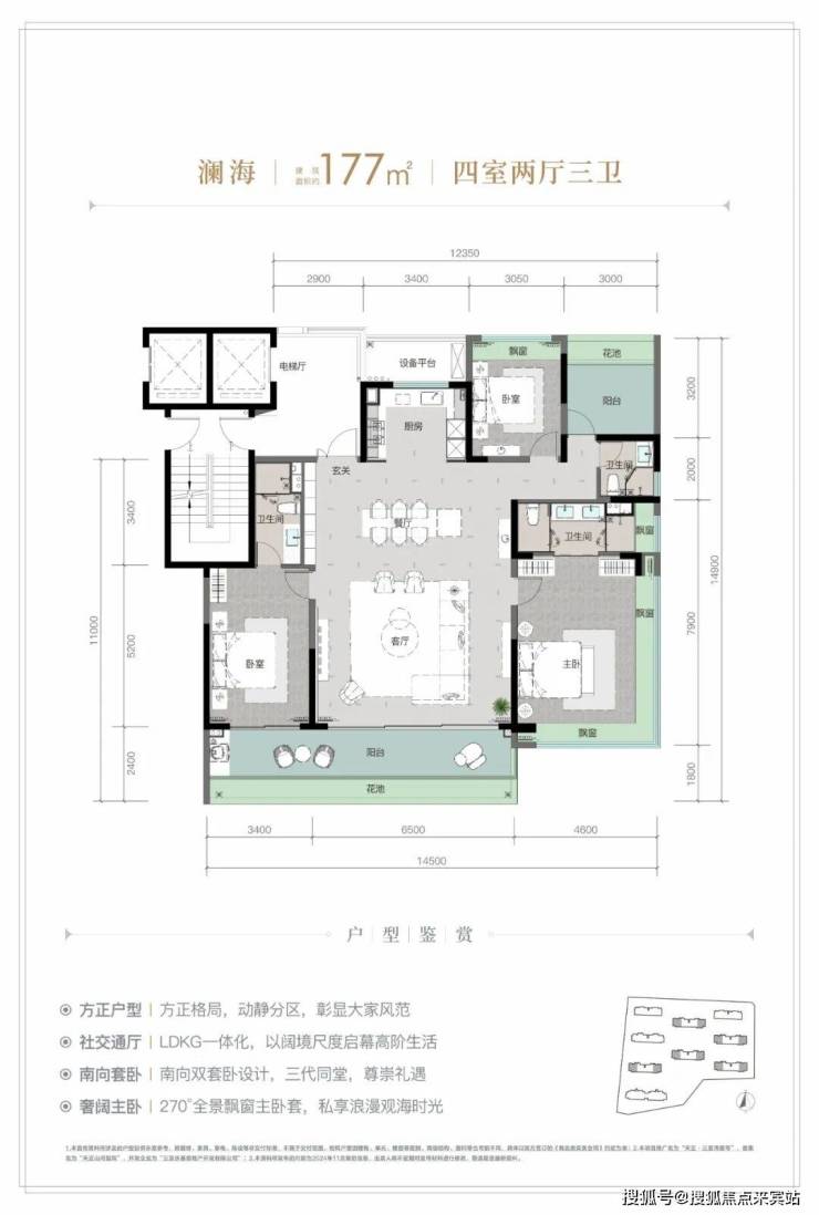 约 126-213㎡奢装观海大平层,3.1 米阔绰层高,270° 全景飘窗主卧套、四开间朝南等创新设计,全成品高标奢装,焕新舒居体验。