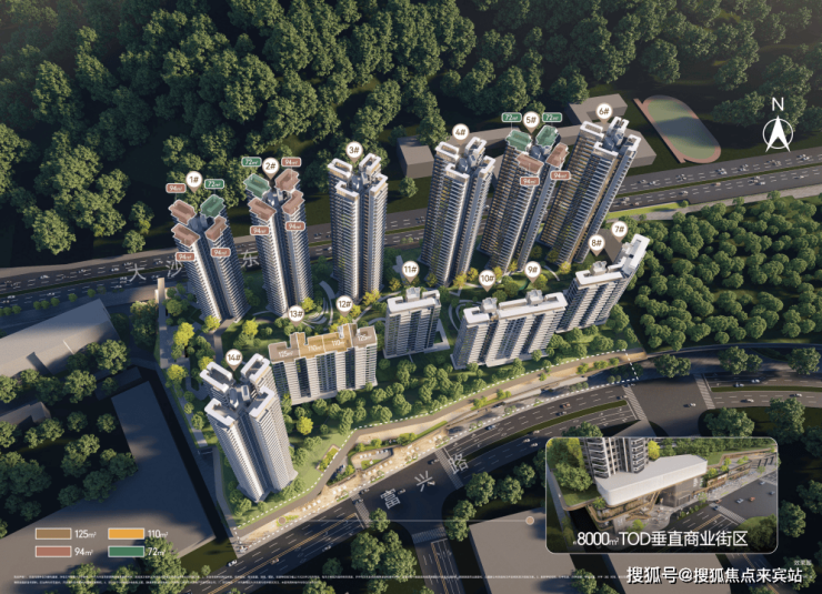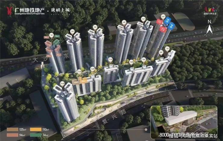 产品类型:建面约 74-94㎡高层三至四房、建面约 110-125㎡板式小洋房
