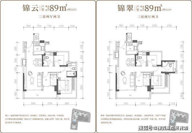 户型面积:89㎡三房,104-106-107-127-130㎡四房