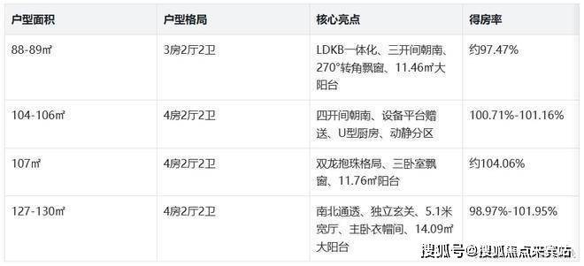 项目户型均按国标新规设计,得房率普遍超97%,部分户型可达104%,空间利用率极高,远超传统楼盘。