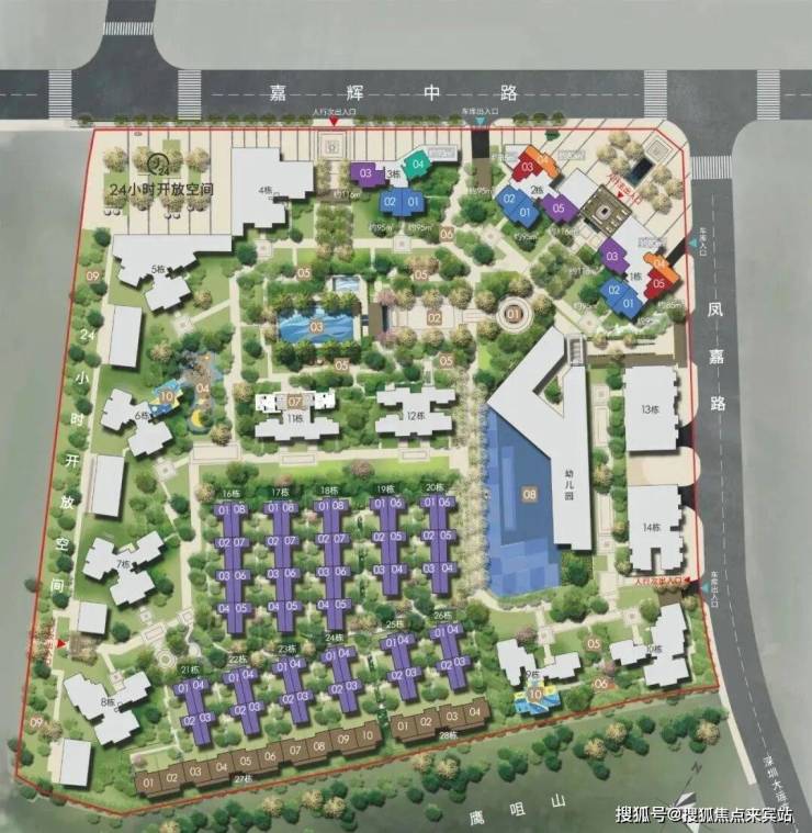 一线山景:南临鹰咀山,半环抱式布局,依山造景,藏风聚气,瞰山洋房,临山别院,原生伴山阔景。