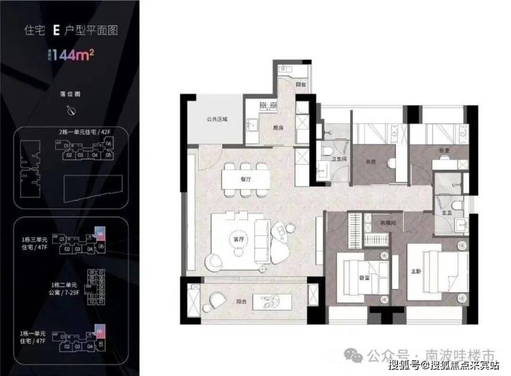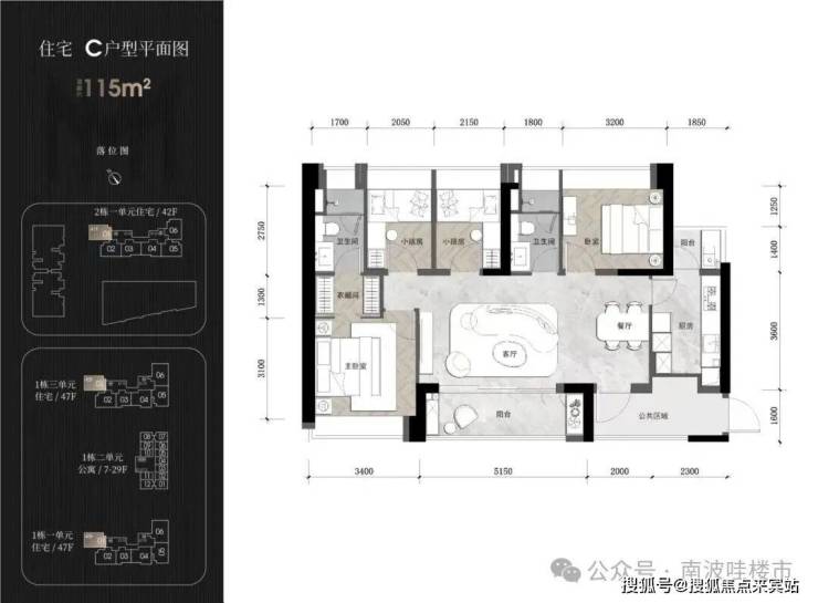 住宅1栋一/三单元47层 住宅2栋一单元42层 公寓29层