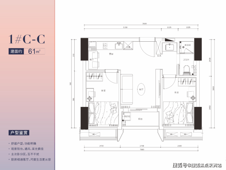项目约61㎡/68㎡两房一卫户型正在热销,可满足青年情侣、三口之家等多种人群的居住需求,覆盖人群非常广。