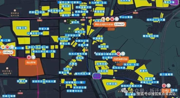 事实上,珠光村的整体区位较为优越,具体位置方面,该项目附近有7号线地铁站珠光站和茶光站,直线距离分别约400米和700米,从茶光站出发一站即到西丽地铁站(5号线环中线和7号线的换乘站),另外项目2公里范围内还规划有西丽高铁站。