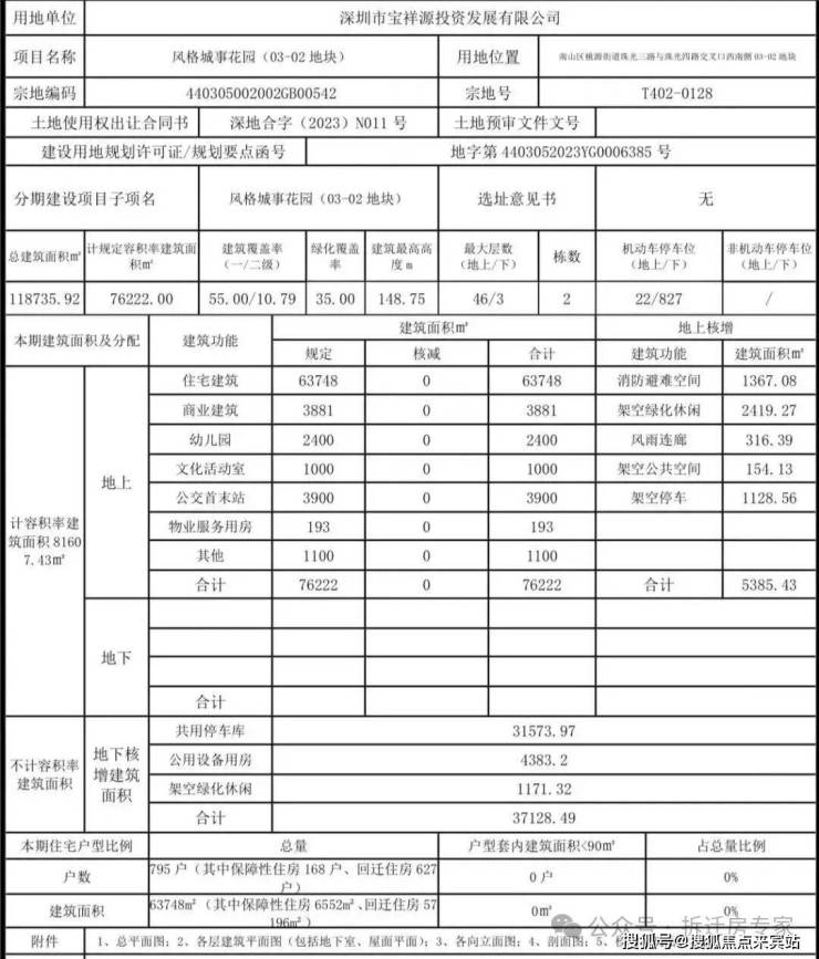 03-02地块总建面约12万㎡,住宅建面约6.4万㎡,795户住宅,用于保障性住房168户、回迁住房 627户;还有3881㎡商业。