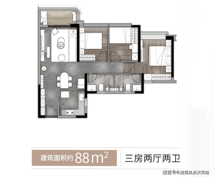 万象·荧曜 88㎡ 三房两厅两卫