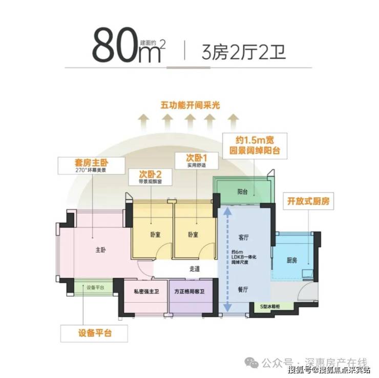 4开间约12m,全东南向采光,视野开阔,大套房主卧180度环幕采光景观,S型墙体设计冰箱位,使用空间利用更合理,客餐厅一体化设计,空间利用更高效,家人间互动交流感更强。