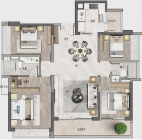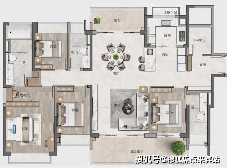 约180㎡四房两厅三卫:两套间设计、中西双厨,南北双阳台!