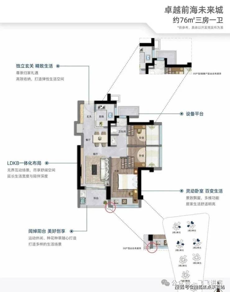 76㎡三房一卫:这无疑是项目的“神户型”,总价控制得极好,功能完备,是预算有限但又渴望三房家庭的绝佳选择。