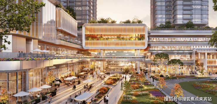 卓越缦悦是开发商和皇岗村合作的旧改,分两期开发,两期住宅(包含商品房和回迁房)都建于7万方的购物中心之上,共用一个空中花园: