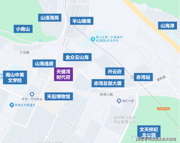 天健湾时代府位于招商街道赤湾片区赤湾六路与天后宫路交汇处以东,临近地铁2号线赤湾站。