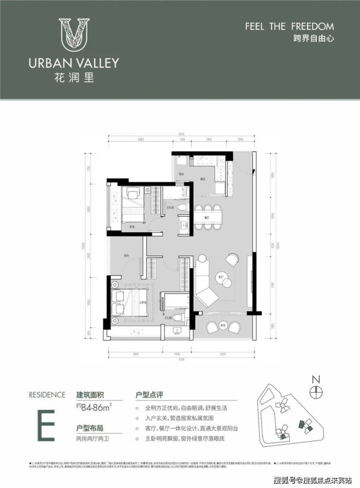约84㎡的产品比较稀缺,分布在2栋和3栋,一共四条腿,朝南和朝北的都有。