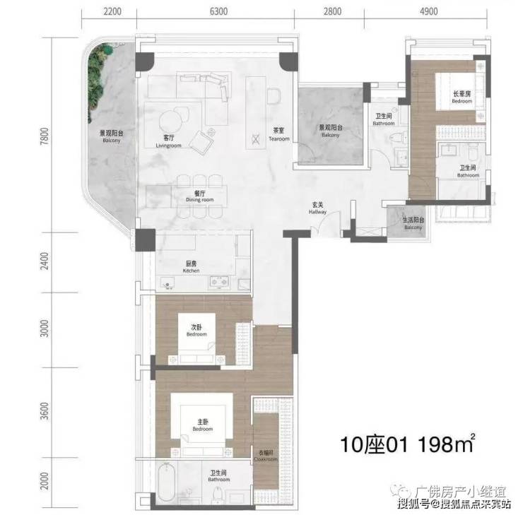 10栋01户型 198平四房 ,7.8米长阳台