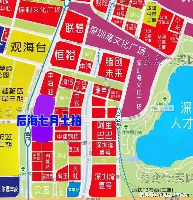 该地块位于深圳湾后海位置,登良地铁站口旁,开拍前就备受期待。附近有中铁南方总部大厦、中建科工大厦、喜之郎大厦、华强方特大厦、中海油大厦等总部大厦,还有蔚蓝海岸2-3期等小区,该小区挂牌均价约10.9-11.9万元/㎡。