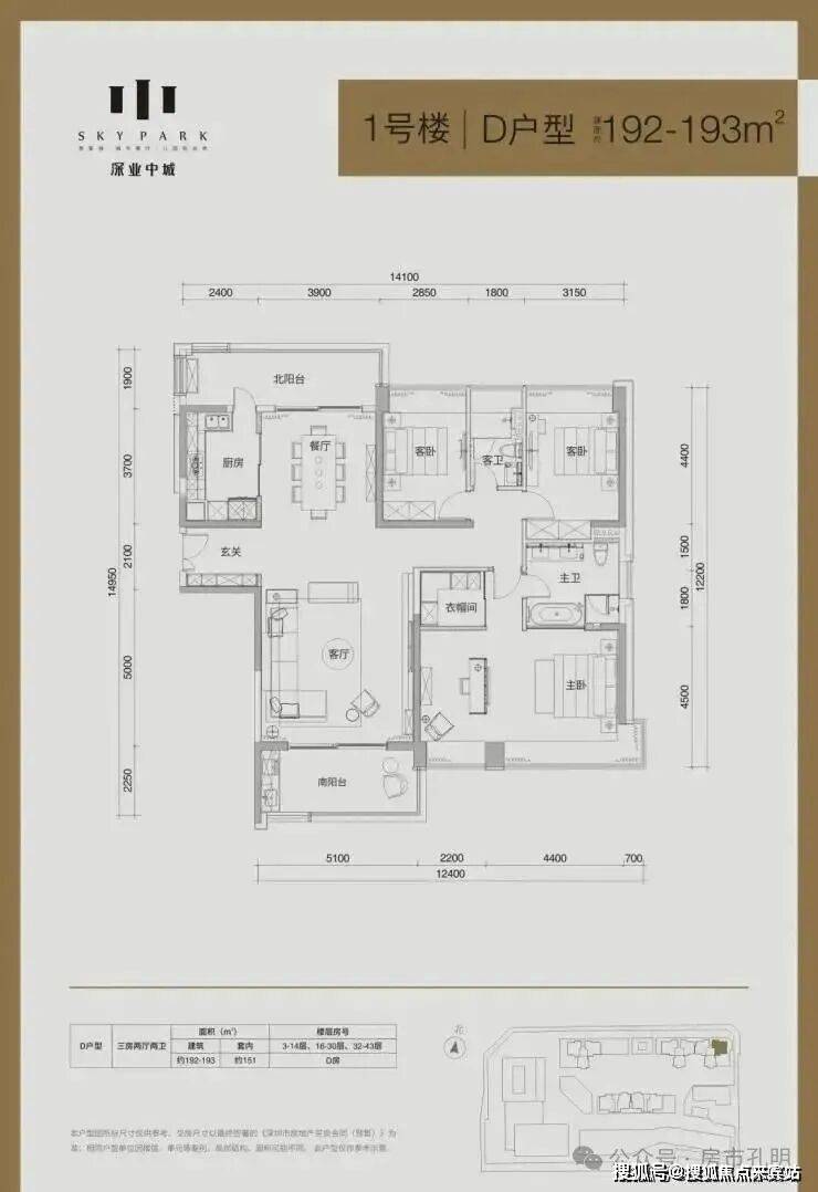 住宅共有三栋,2/3栋为28-29层,合计192套住宅;1栋为43层,共222套。