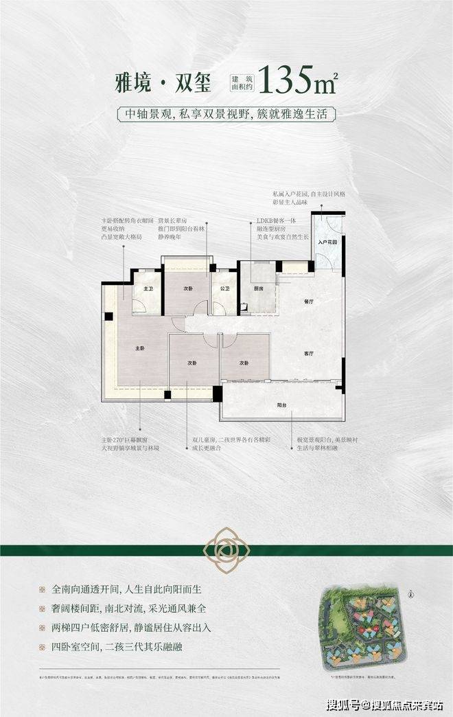 135-138平方米:LDKB一体化宽厅设计,双阳台配置,主卧配备270°飘窗,带来无界视野体验。