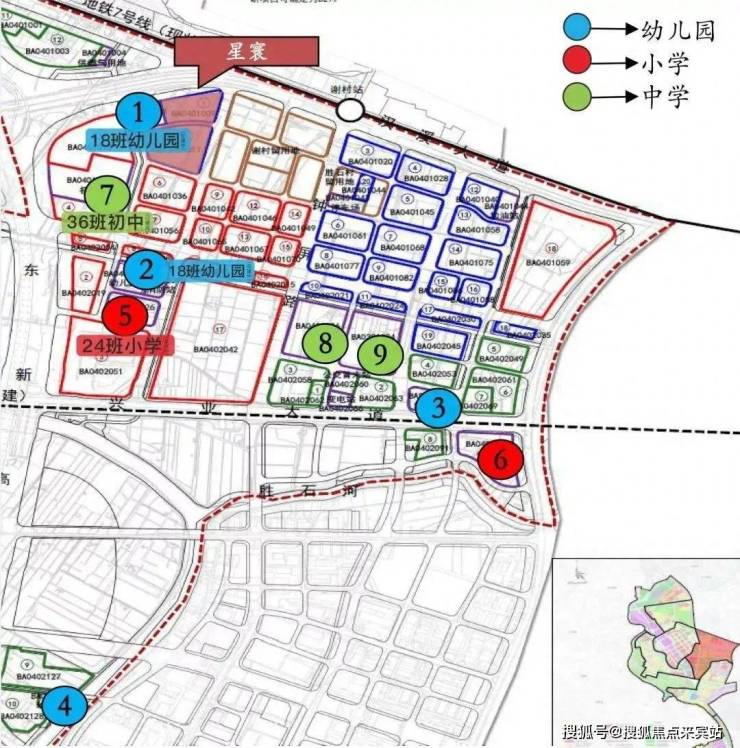 -项目配建一所18班幼儿园(建设中),西边地块已建成1所中学(待统筹)、南边地块已建成1所18班幼儿园(待统筹)、24班小学(在建中),东边地块规划5块教育用地(2块幼儿园用地+1块小学用地+2块中学用地),全龄段公立教育资源环绕。