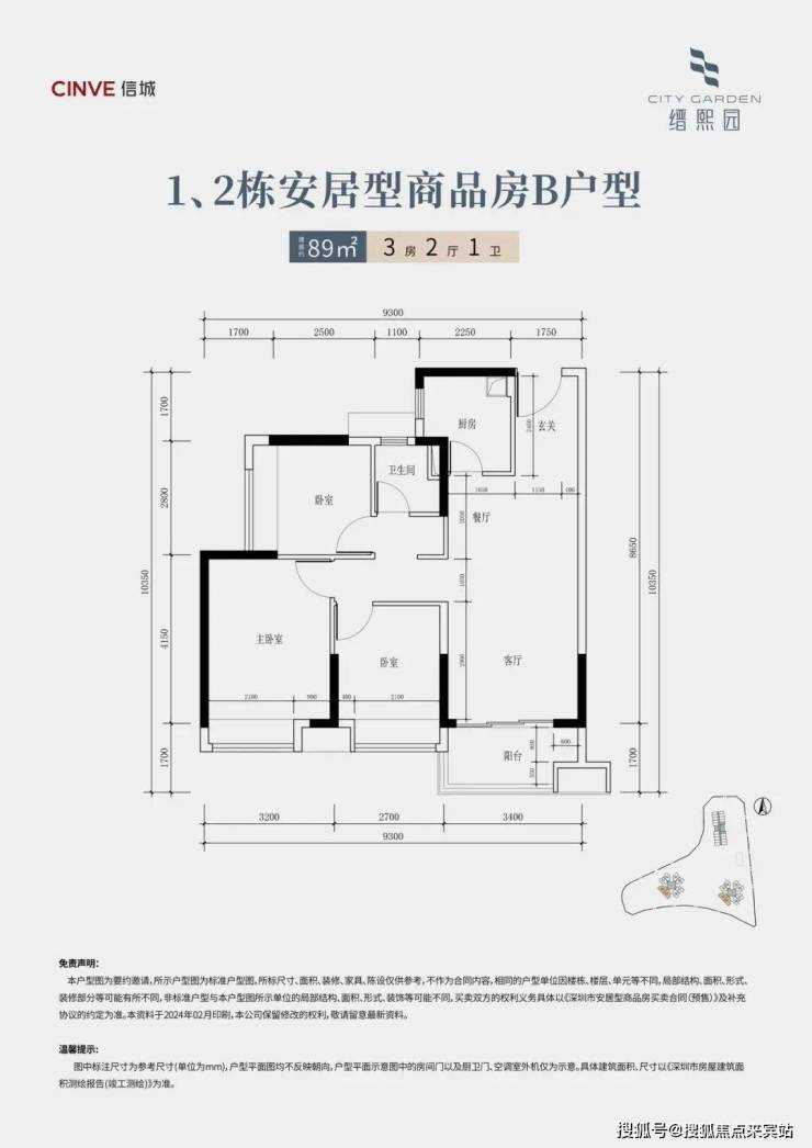 小区总占地面积约1.5万㎡,建筑面积约8万㎡,一共3栋楼、32层高,3梯8户,总房源928套,其中496套安居房、432套保租房。本次可售的496套房源中,68㎡两房372套、89㎡三房124套,都是精装交付,今年买今年住。产权70年,2026年3月已交付。