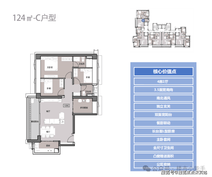 124㎡的4房2厅2卫(横厅):东南以及西北朝向,独立入户、无遮挡景观。