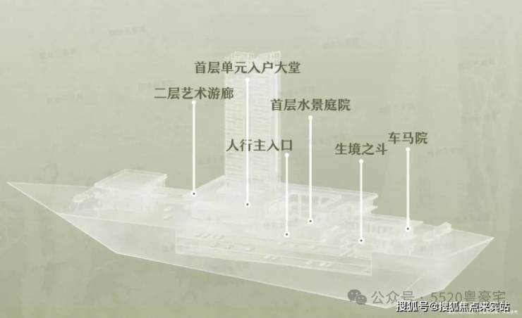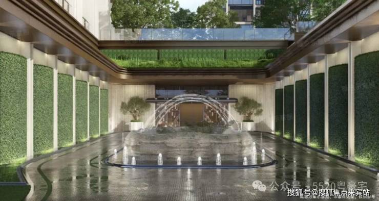 首层谧邸之厅:采用围合式庭院设计,阔绰车马院与酒店式落客区以从容礼序迎接归家,营造出私密而尊贵的入户体验。