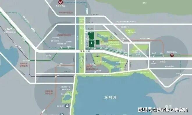 地铁:距离地铁 1 号线白石洲站约 600-800 米,步行可达。规划中的 29 号线预计 2028 年通车,将在项目楼下设白石洲北站,未来还将有地铁 20 号线在此交汇,届时将形成四线三站两枢纽轨交体系。