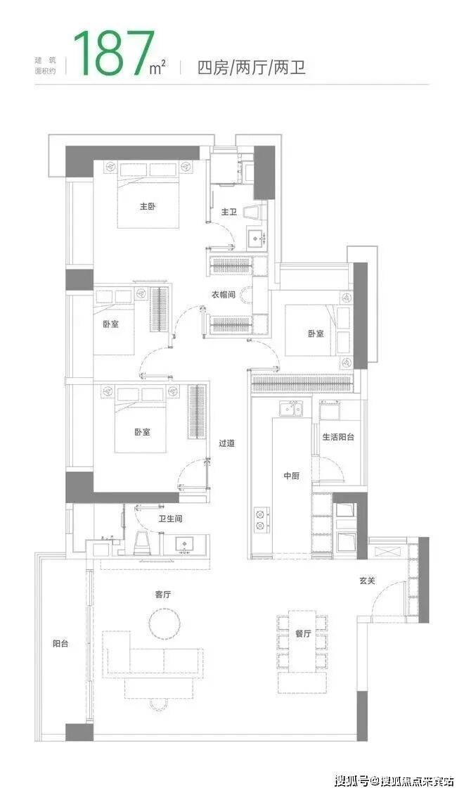绿景白石洲璟庭户型图:主力户型包括 110㎡、118㎡、125㎡的三房和 187㎡的四房等,以下是对其部分户型的: