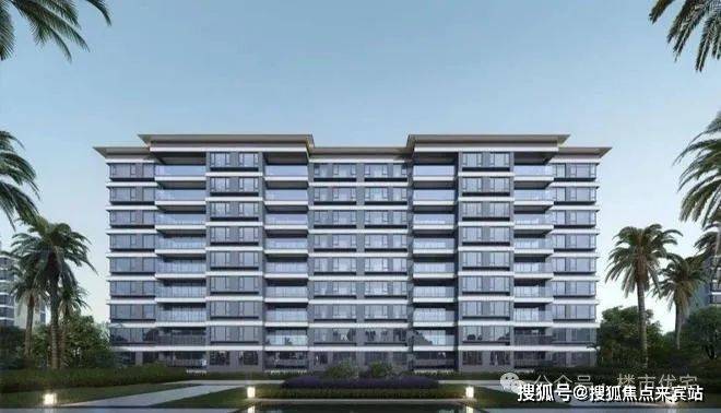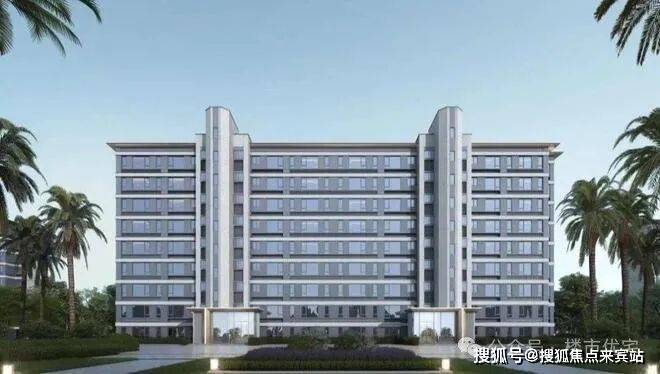 公建化立面、横向线条、素色肌理。以深色为底,用浅色强调横向线条,打造出公建化的住宅产品立面,简洁而富有张力,营造出高级感。