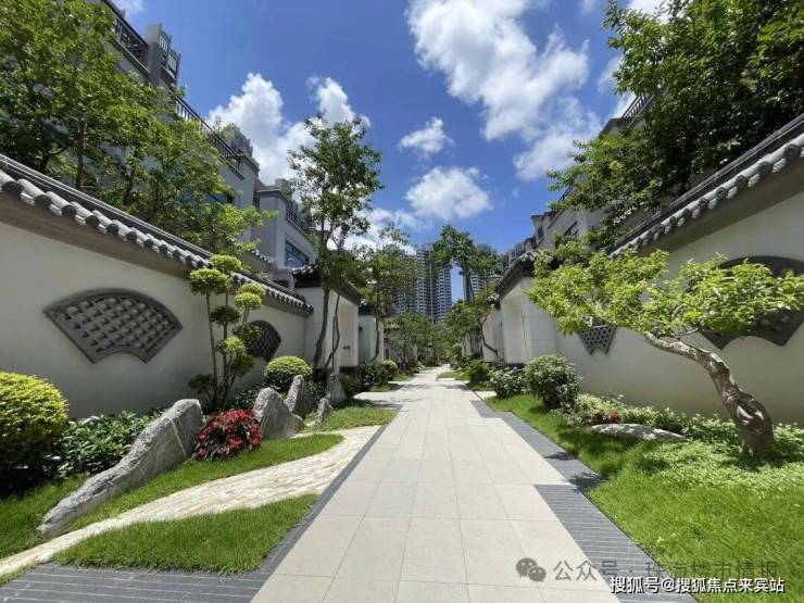 ✔一期社区园林分为横(东西向)纵(南北向)双景观轴设计,横向景观轴面积达2万㎡,将高层和别墅区进行分隔,保证互相的私密性,纵向景观轴贯穿别墅区,彰显了社区的庄重和仪式感。