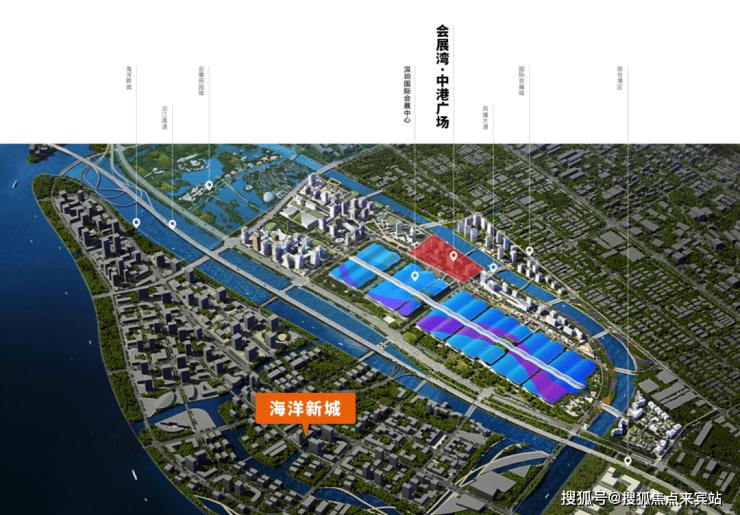 会展新城地处深圳西部,是深圳在粤港澳大湾区的战略制高点,与前海、蛇口并列为深圳融入湾区的两大枢纽,占位珠三角广深港发展走廊核心。