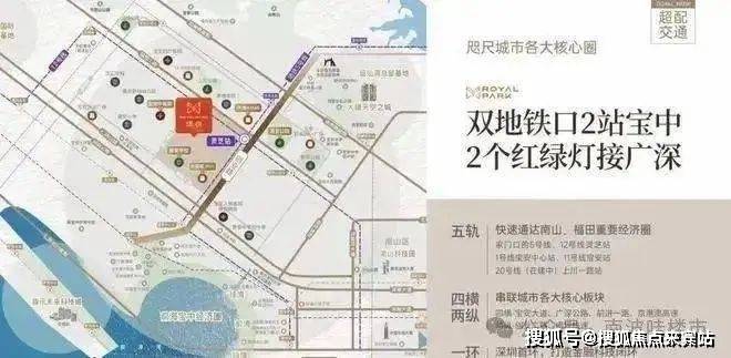 双轴交汇:深圳一路向西发展新主轴,与前海中心滨海主轴——湾区商务大道交汇,成就城市黄金双轴交汇点;• 黄金交汇点:珺悦ROYAL PARK,傲踞黄金双轴交汇点,汇聚商务、商业、科技、生活、休憩、交通等多元发展要素,坐享城市发展利好。
