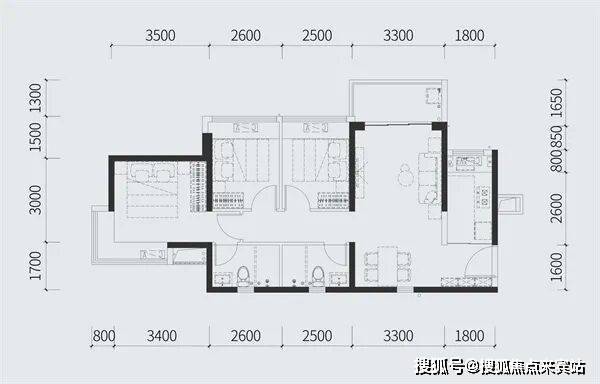建面约88㎡三房两厅两卫全明户型 纳阳光清风入怀主卧套房设计 尽显尊贵从容