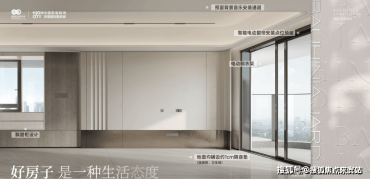 人性化品质精装交付、隐藏式音响接口预留(背景音乐)、预留电动窗帘电源;