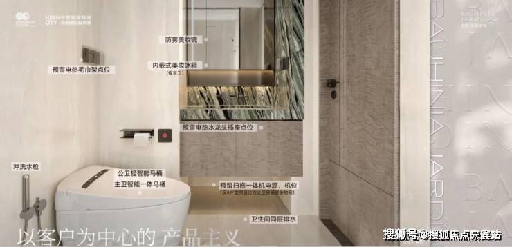 静音专项设计、线形地漏(淋浴间)、同层排水(洗手间)。
