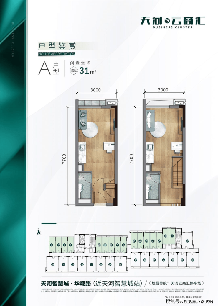 其中,创意LOFT建筑面积约30-55㎡,企业总部建筑面积约155-900㎡,总套数约1700套。
