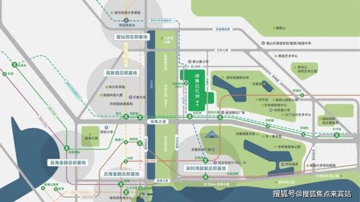地铁:一期绿景璟庭离1号线【白石洲站】约800米左右,离2号线的【世界之窗站】约1.5公里;此外还有29号线【白石洲北】(2023年已经开始建了,预计28年通车)就在一期璟庭楼下;29号线自南向北连接南山红树湾到光明科学城,未来三站即可到达深圳最大高铁站西丽高铁站(在建中)。