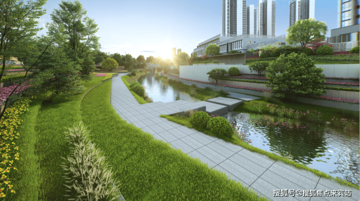 (项目效果图)休闲生态:远眺梧桐山河自然景观,近游滨水公园,长度约2.4公里梧桐山和碧道在旁,串联街心公园、休闲广场与慢享碧道,打造出一条环抱社区的慢享休闲绿道,成就城市奢适自然主场。