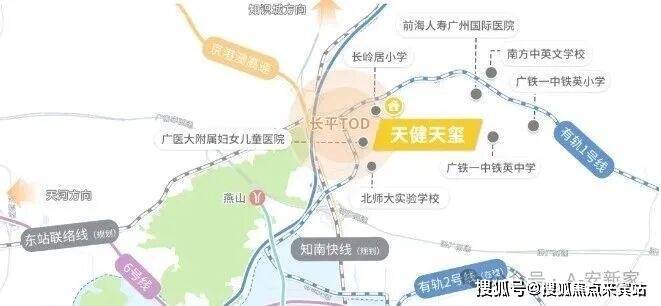 项目直连黄埔区有轨电车1号线,2站接驳地铁21号线长平站,可一站换乘地铁6、7号线。未来两条高速地铁(知南快线、广从快线)也将交汇于此:可实现南沙12分钟到长平、广州东站9分钟到长平。