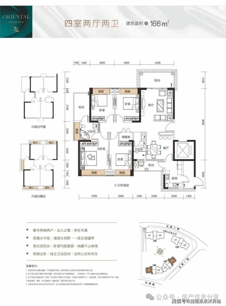 项目依傍梧桐半山,约166-188㎡四房大宅,三梯两户。纯板式结构,南北通透接纳更多梧桐绿意。