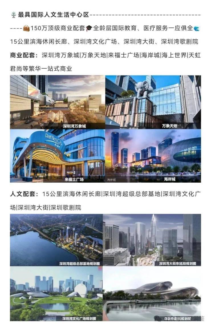区域:世界级湾区,后海总部基地,顶级经济聚核:后海金融总部基地与深圳湾超级总部携手,打造以深圳湾为中心,具备全球竞争力的深圳湾超级经济体,其将成为推动深圳超级未来发展的源动力;