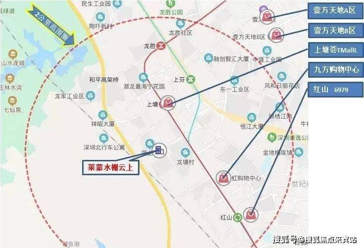 项目2公里范围内目前现有的大型集中式购物中心有上塘荟TMAIIL、九方购物中心(天虹购物中心)、红山6979商业中心等。不过这几处商业距离项目都稍远,步行会耗时过长,也不比较累,缺少了一些便利性。