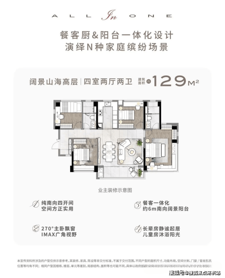 主卧室270°转角飘窗,景观视野开敞舒适