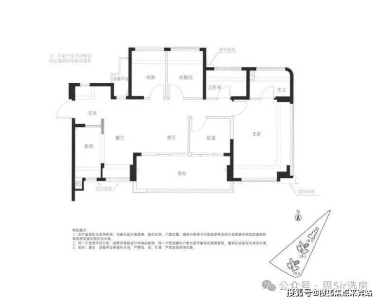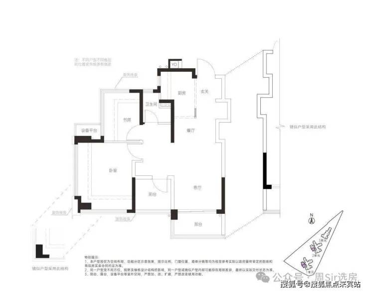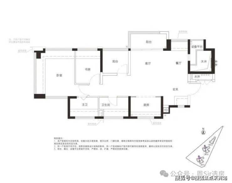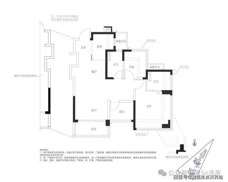 78㎡的3房2厅2卫,设计的是竖厅格局,客厅3.4米开间,LDKG+X空间一体化,S墙设计预留冰箱卡槽位,动静分区,三开间朝南,主卧+1个次卧都是双飘窗设计,次卧带1个设备平台放空调机位,U型厨房,卫生间干湿分离,公卫带1个设备平台可日常使用,得房率:100%(包含赠送),西南或东南朝向。