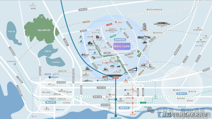周边配套:项目配套能级为深圳北站核心区顶配,交通上无缝接驳地铁4/5/6号线深圳北站,并坐拥广深港高铁枢纽;教育上学区属深圳外国语学校(龙华校区)(具体以当年教育局划分为准),为龙华区优质名校;商业上近邻红山6979、天虹、Costco等大型商业体;生态上近邻深圳北站中心公园、玉龙公园,拥有永久性无遮挡公园视野。