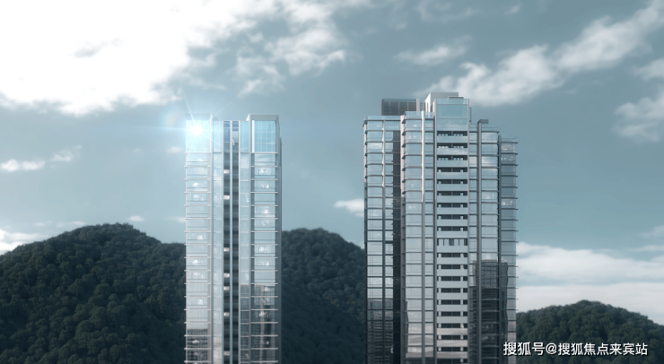 产品设计走高端路线:一梯一户私密性强,铝板玻璃幕墙颜值抗打,外立面铝板玻璃幕墙,配泳池、健身房等高端设施;但实用率约72%,东北面采光受限。